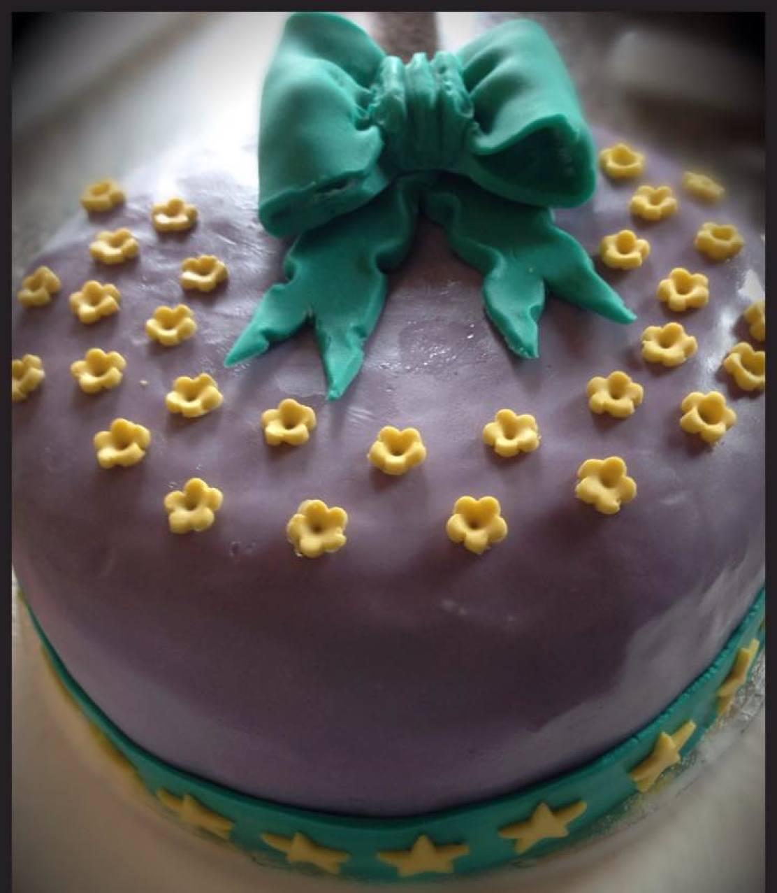 Verarbeitung: alle Farben waren sehr weich und liessen sich deshalb sehr gut kneten. Das ausrollen des Fondantes ist somit ein Kinderspiel und vorallem, was ich ganz besonders wichtig und gut finde, es lässt sich sehr dünn ausrollen. Durch meine Knettechnik sind kleine Blasen im Fondant entstanden, die habe ich vorsichtig angestochen und konnte sie somit sauber raus drücken, und hinterher war auch keine Spur mehr zu sehen. Was mich total erstaunt hat, ist das er beim hochnehmen mit dem Rollstab, trotz das er so dünn war, nicht gerissen ist!!!! Er ließ sich auch super glätten am Kuchen.