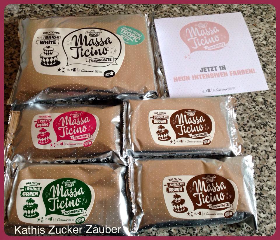 ich habe in vielen Backgruppen auf Facebook immer wieder Testpaket mit Fondant der Marke Massa Ticino gesehen. Also habe ich recherchiert und hab mir ein Testpaket von Massa Ticino zuschicken lassen. Auf den folgenden Bild seht ihr was enthalten war: