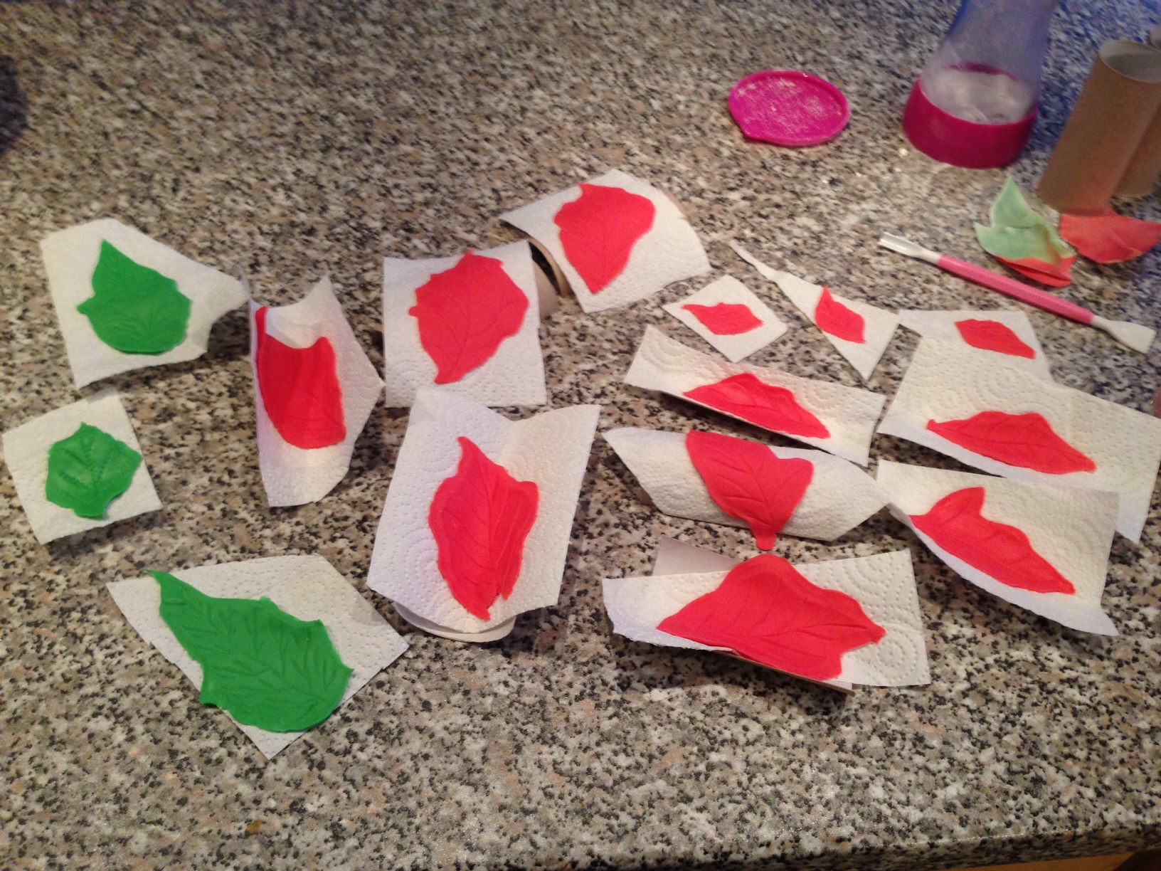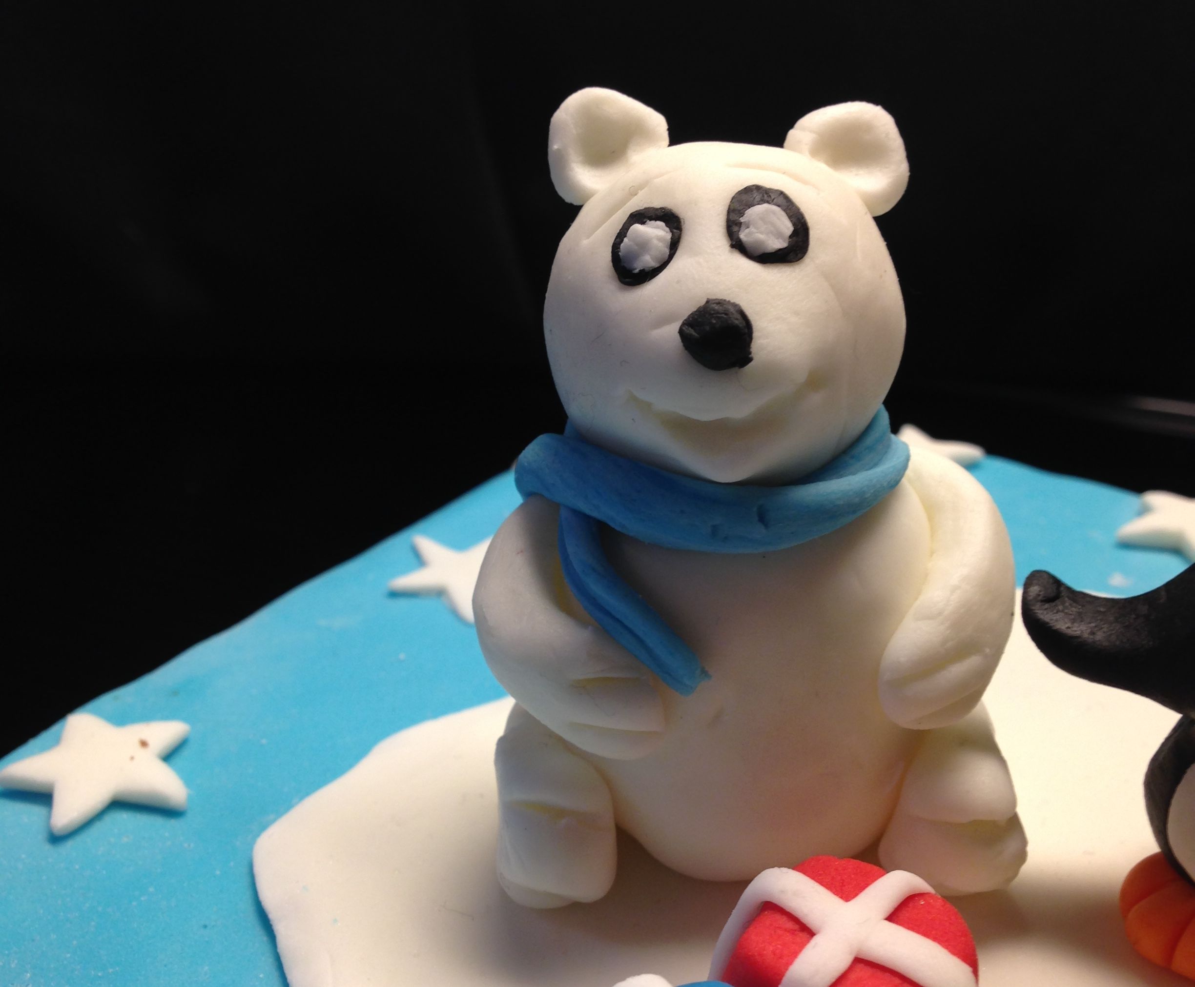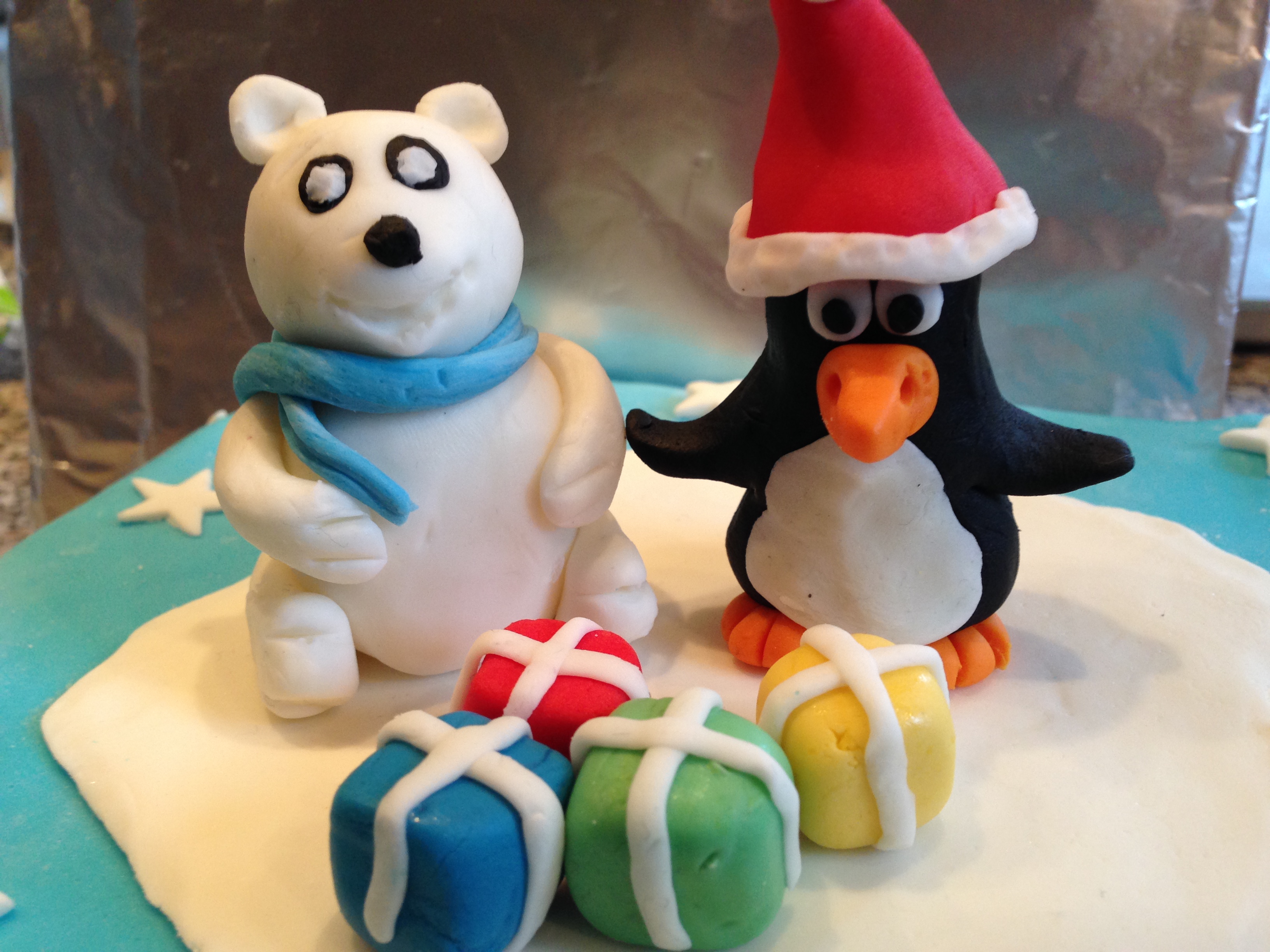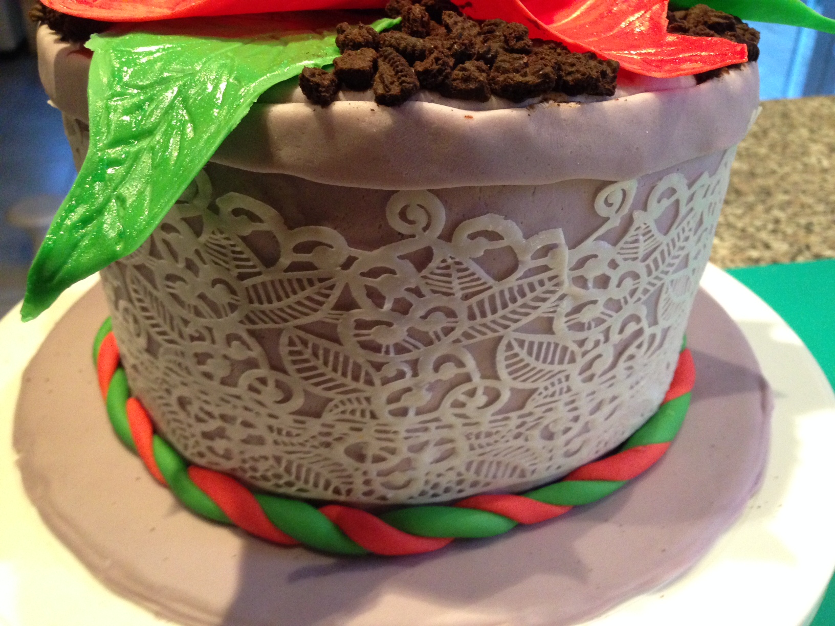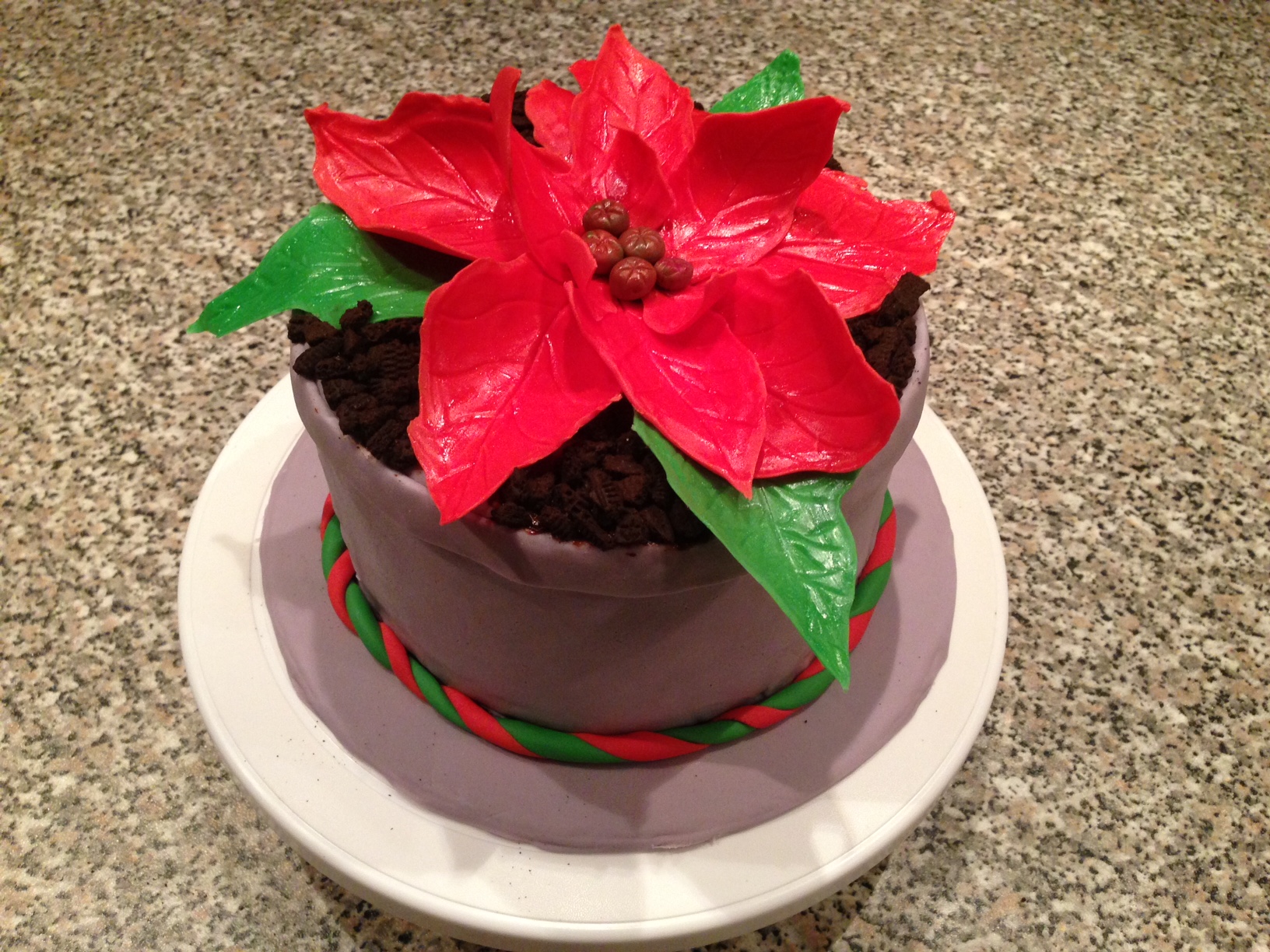 Der Weihnachtsstern besteht aus Modelierfondant (gemischt aus Blütenpaste & Rollfondant, 1:1); angepinselt mit essbarem Glitzergel & die “Erde” besteht aus Oreokekskrümel.