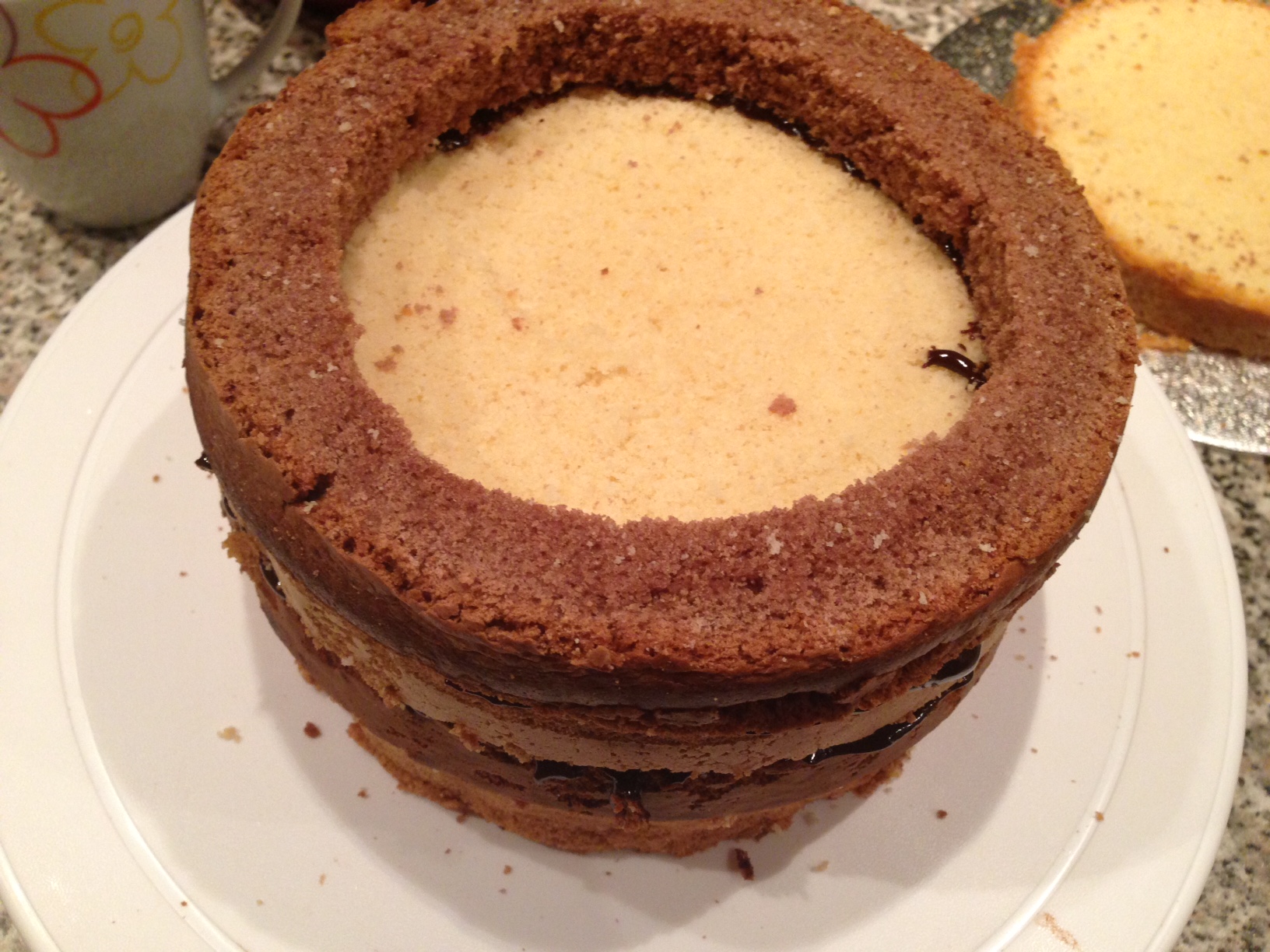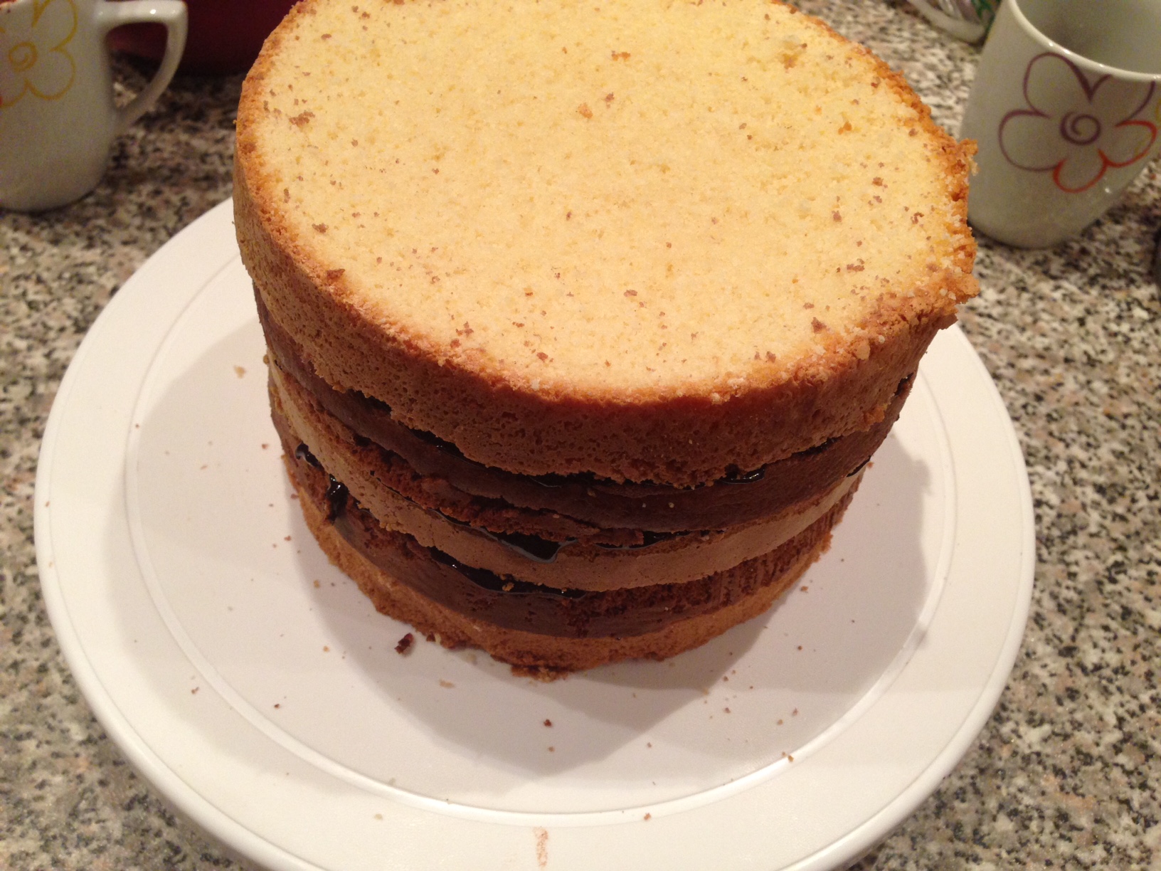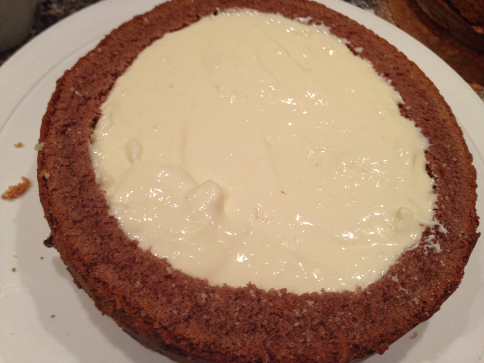 Meine ganz persönliche Weihnachtstorte mit hellem und dunklen Biskuit gefüllt mit Eierlikörcreme, wobei der Eierlikör auch selber gemacht ist.