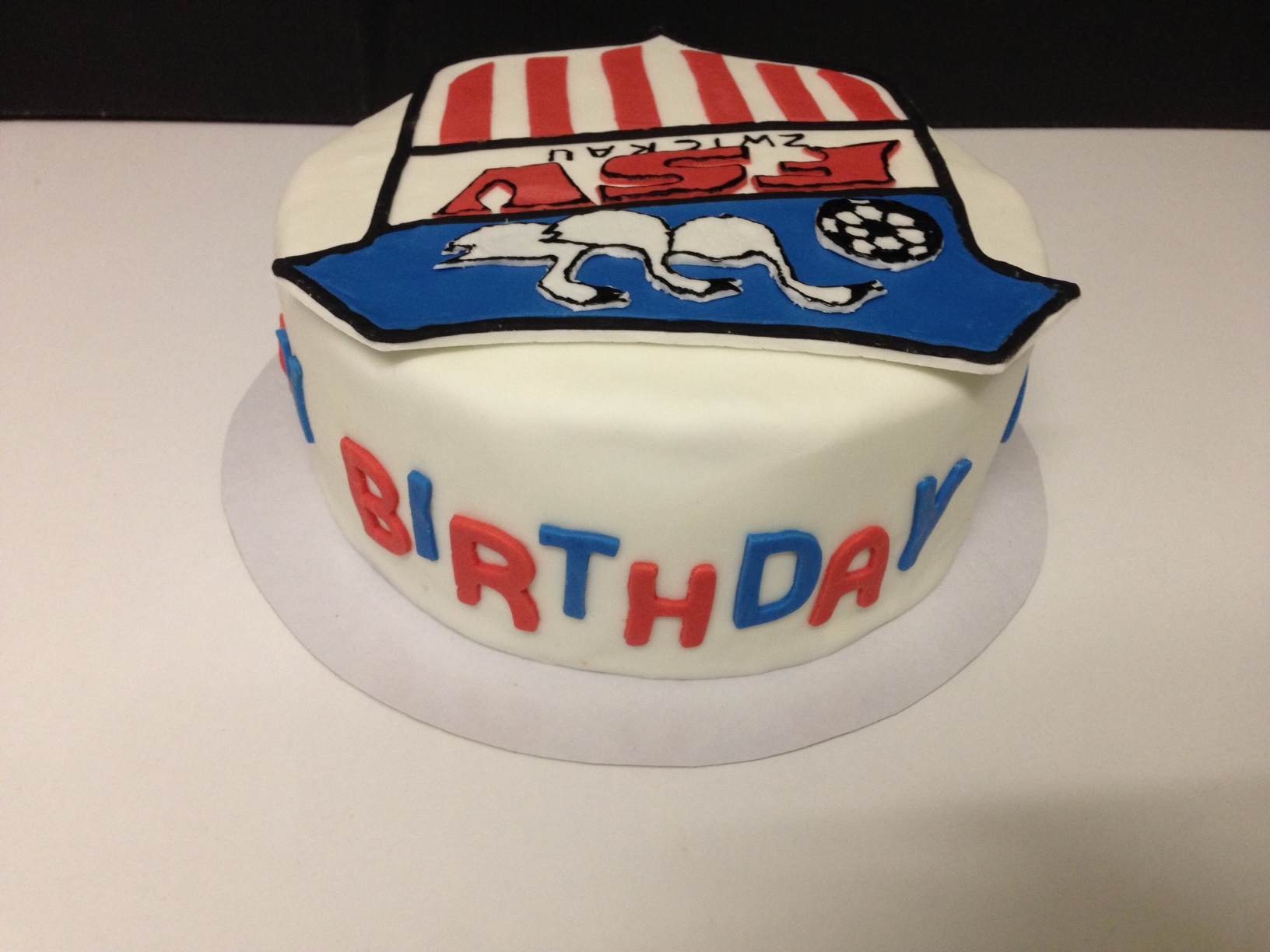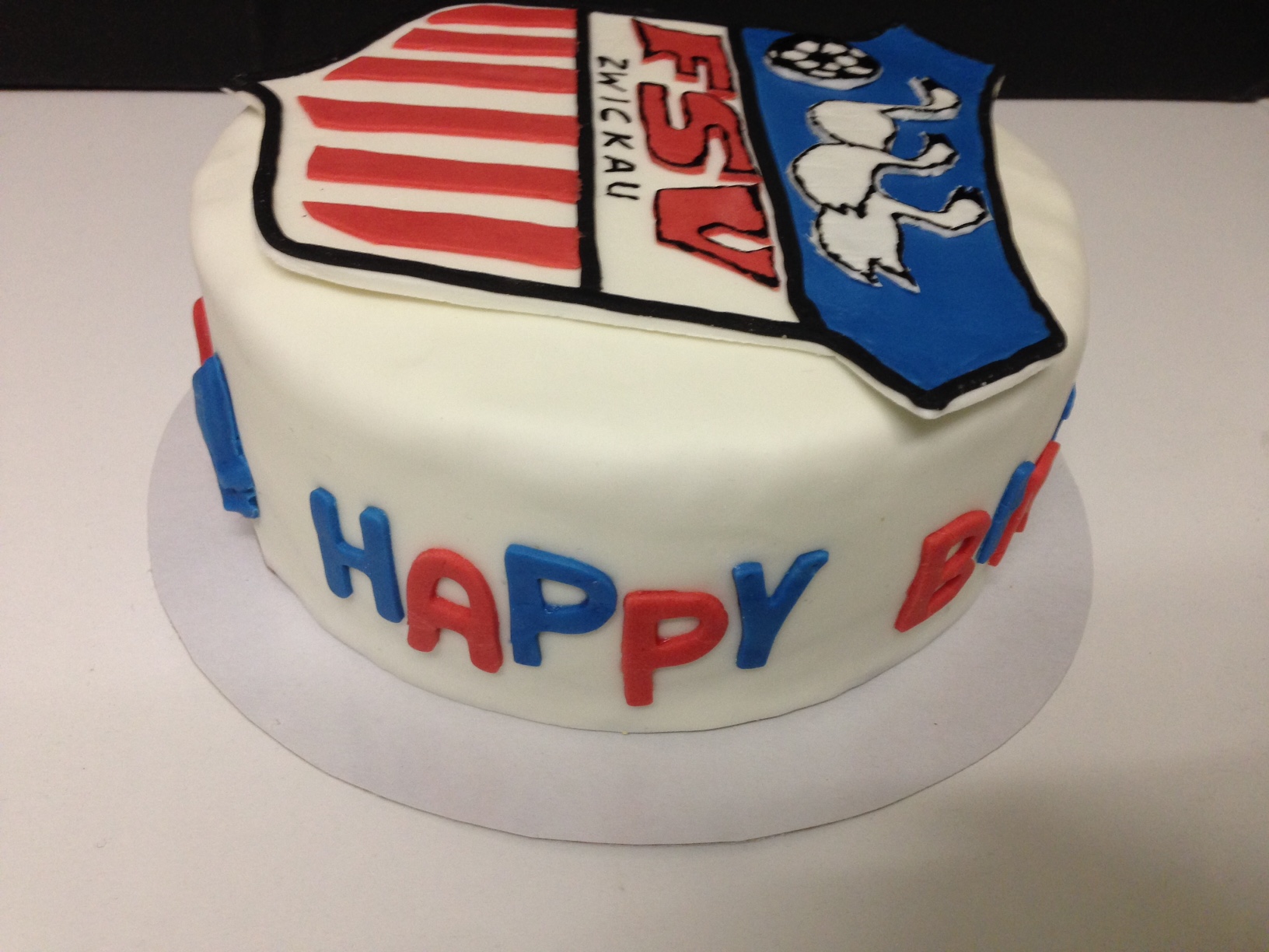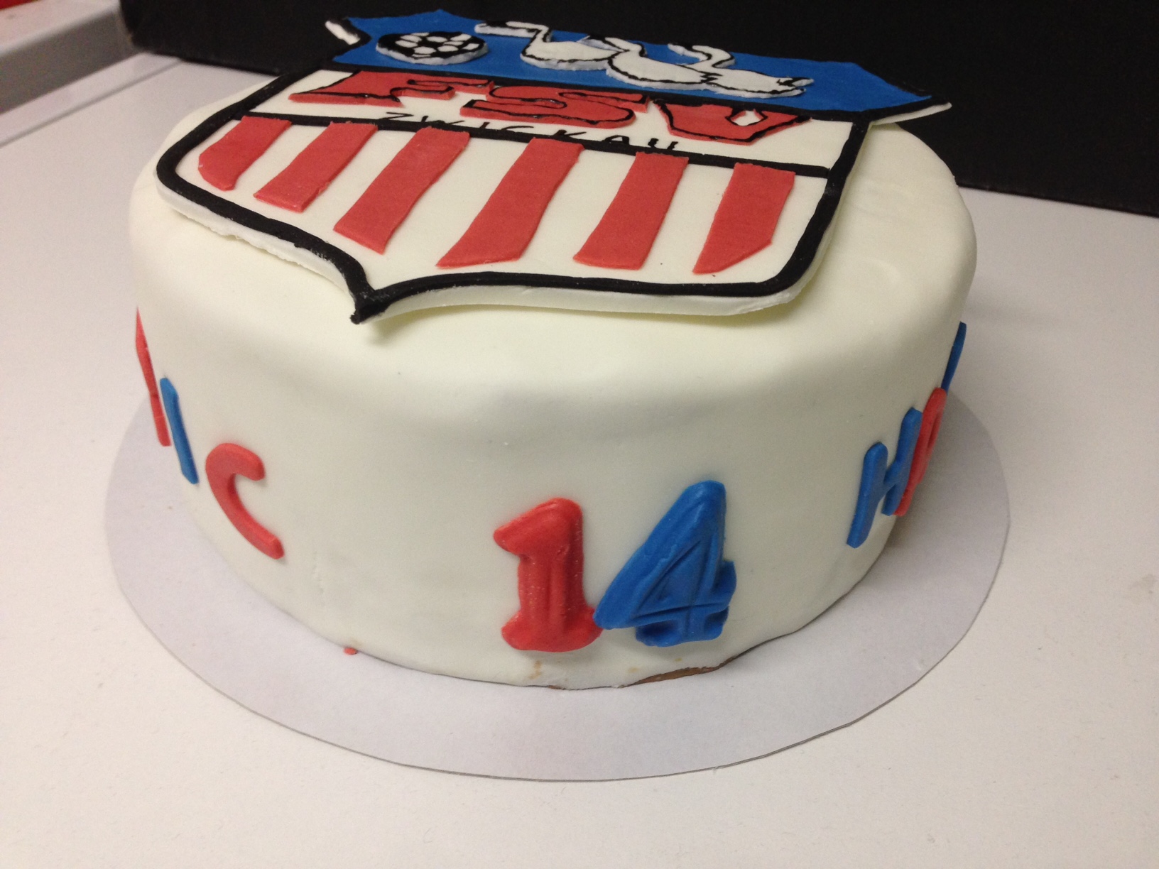 Eine Freundin brauchte dringend eine kleine Torte für Ihren Sohnemann, da bin ich doch hilfsbereit. Schnell war geklärt was es werden sollte, eine Torte mit Kinderschokoladenganache und als Deko haben wir uns auf das Logo des Lieblingsverein geeinigt. Nun konnte ich meinen ersten Tortenaufleger basteln. Ich finde er ist mir ganz gut gelungen.