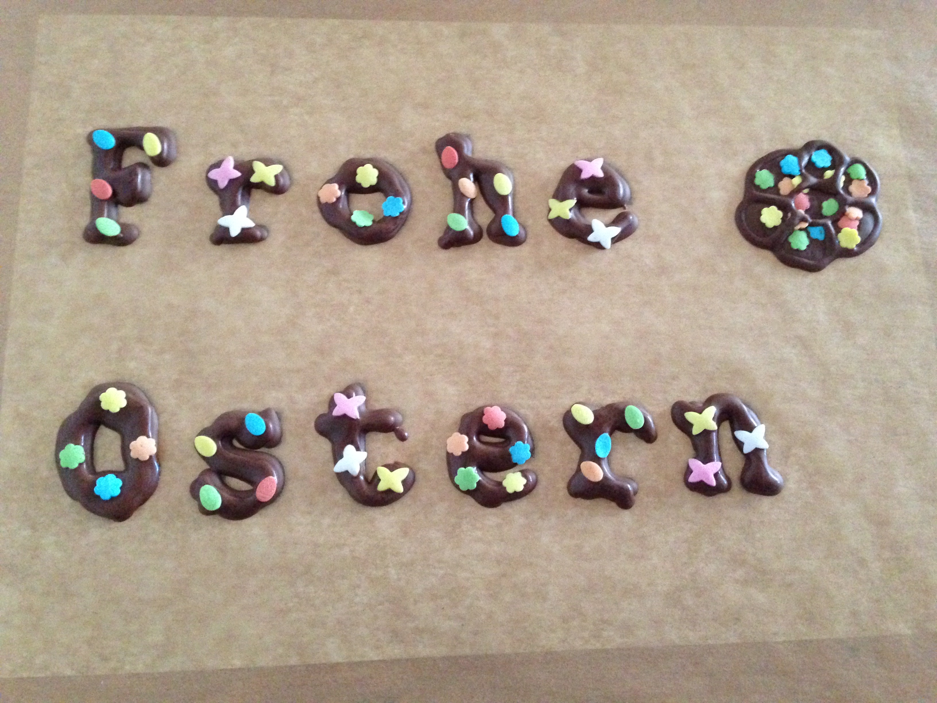 Zusätzlich noch ein kleiner Schokohase und Schokobuchstaben.